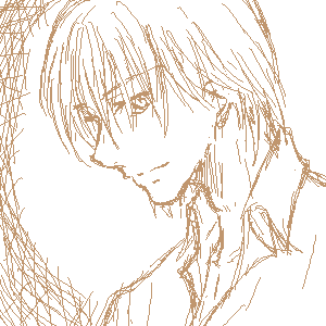 下のらくがきをクリンナップして色付け。細い線で描けません…orz。