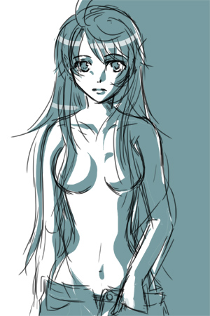 下のらくがきをクリンナップして色付け。細い線で描けません…orz。